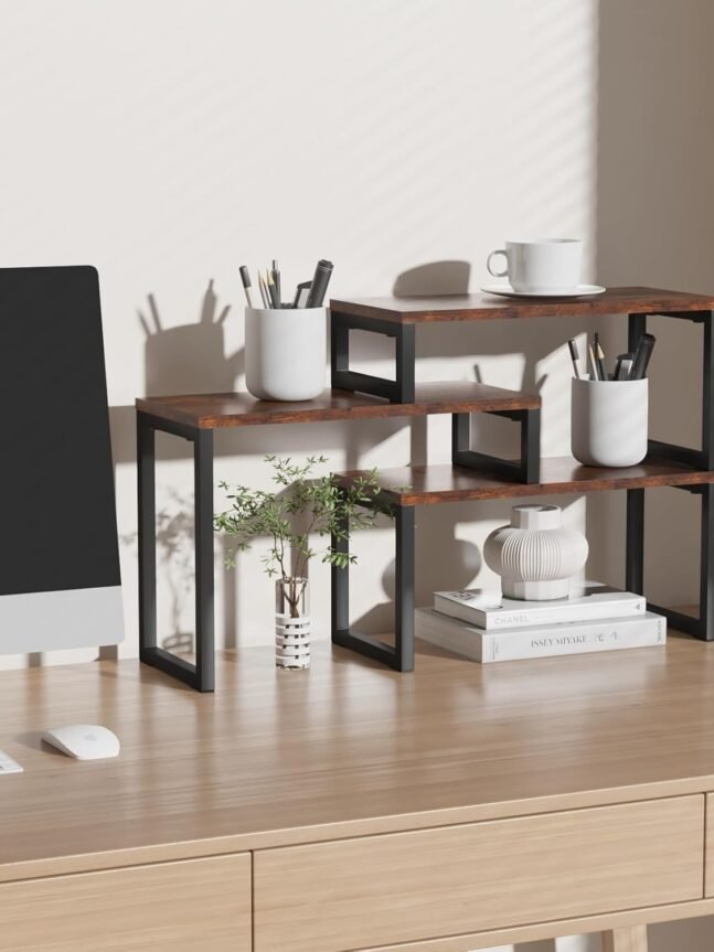 【Rustic Charm Meets Modern Durability】Crafted from a blend of premium wood and robust metal, our desk shelf for top of desk exudes a rustic brown elegance that complements any decor. The combination of natural wooden charm with the strength of metal brings not only a stylish aesthetic but also ensures lasting durability and stability.