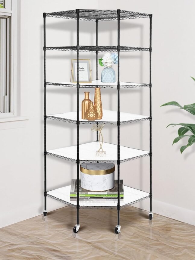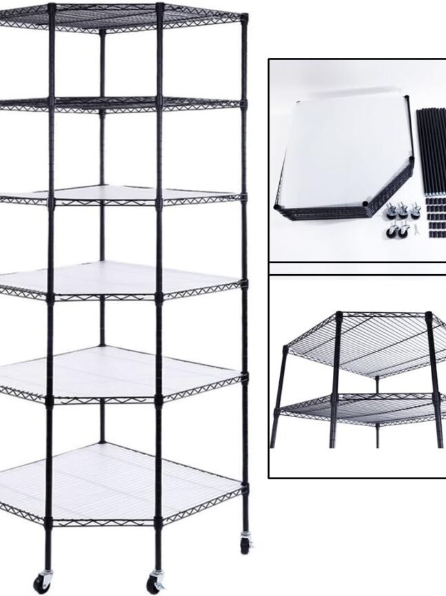 MULTI FUNCTIONA: Our 6-tier Shelving unit perfectly fits in corner, is extremely useful in organizing stuff ,especially great for any place where has limited room while requires large storage space,such as bathroom, doorway, entryway, garage, kitchen, pantry, laundry, office or closet.
