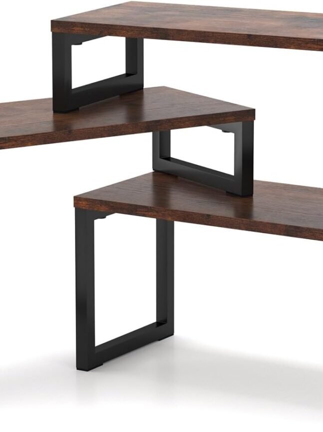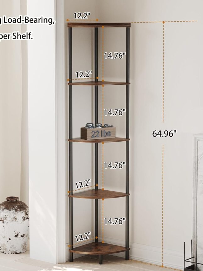 【Urban Industrial and Fashionable Design】: The classic combination of rustic brown and black of the 5-tier corner standing shelf combines the charm of classical and modern furniture styles, showing a sense of luxury in a low-key manner. Unique wood grain finishes collide with metallic elements for an industrial feel, creating a calm and fresh vibe in your room that easily blends into any decor. The perfect combination of decorative and functional uses.