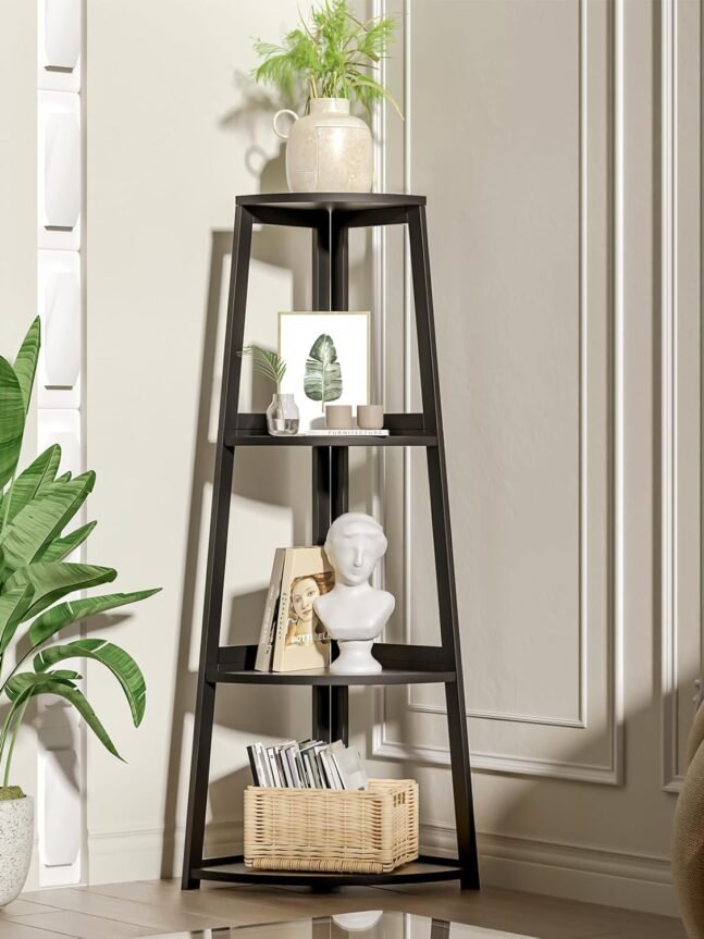 【Black Corner Shelves】The corner shelf is designed to maximize your corner space and can serve as a bookshelf, plant shelf, display shelf, or bathroom shelf. It can be placed in your bedroom, living room, bathroom, balcony, kitchen, or any other suitable location