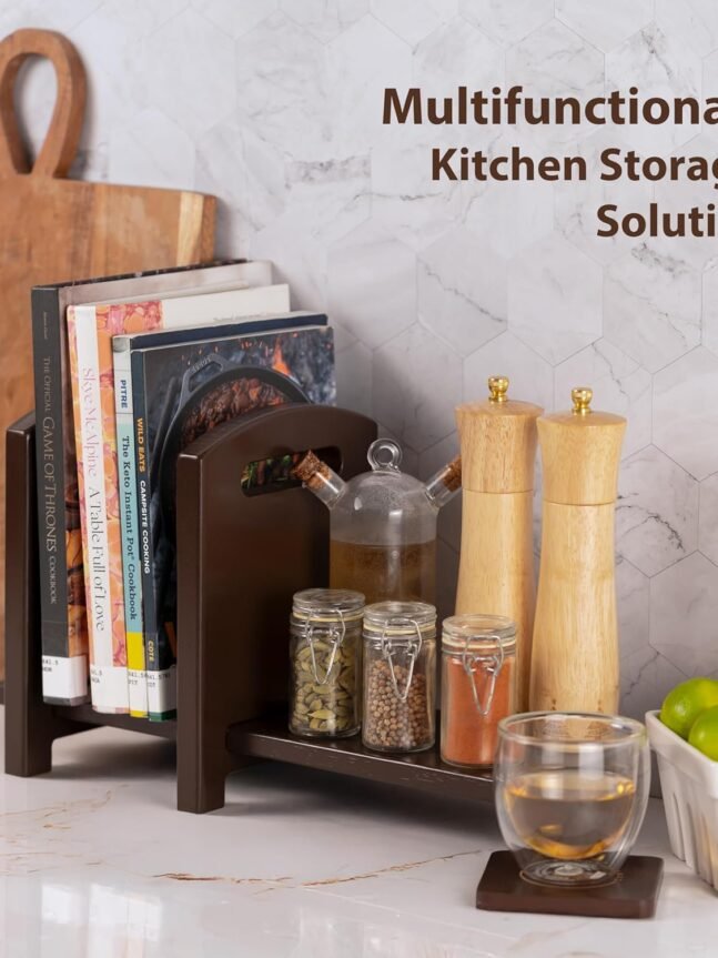 📌 Multipurpose: This shelf for desk serves multiple functions as a bookshelf for desk, desktop organizer, countertop bookshelf which is perfect for storing cookbooks, and for organizing spices.