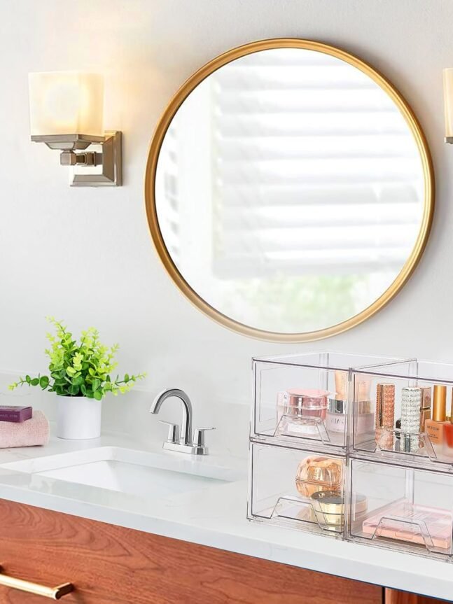 【Space-Saving】These clear makeup organizer drawers help you organize every corner of your home, keeping small items in the acrylic drawer organizer to make your countertop space neater. The stackable design of these acrylic storage drawers allows for vertical storage, saving a significant amount of space