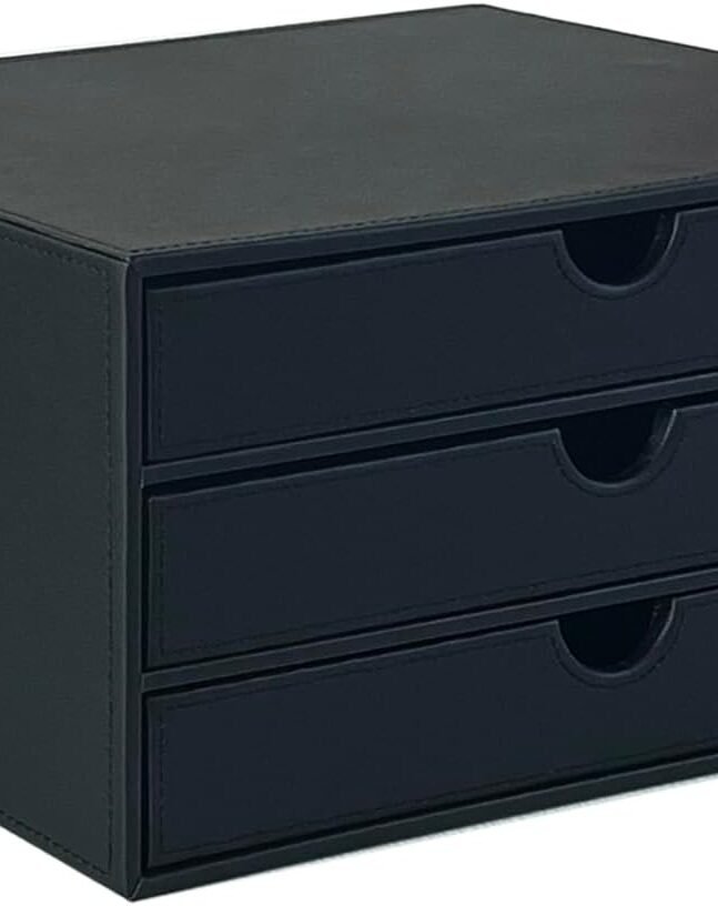 [MULTIPLE STORAGE SPACE]: no assembly required. Overall size of the 3 drawer desktop organiser: 13x7.1x6.3 inches. Ample storage capacity and clever design, according to the size of the small drawers to store the corresponding items in it. Keeps items in order and keeps life organised.
