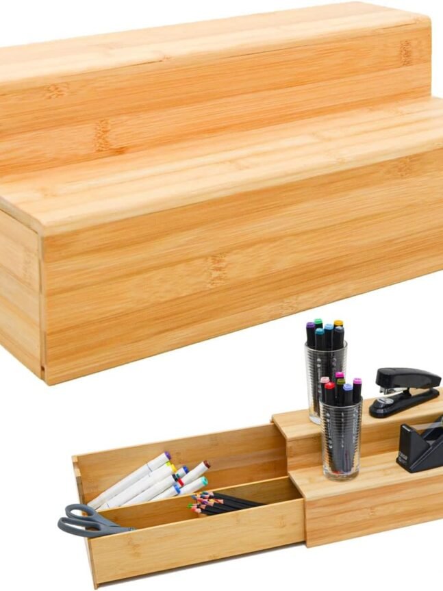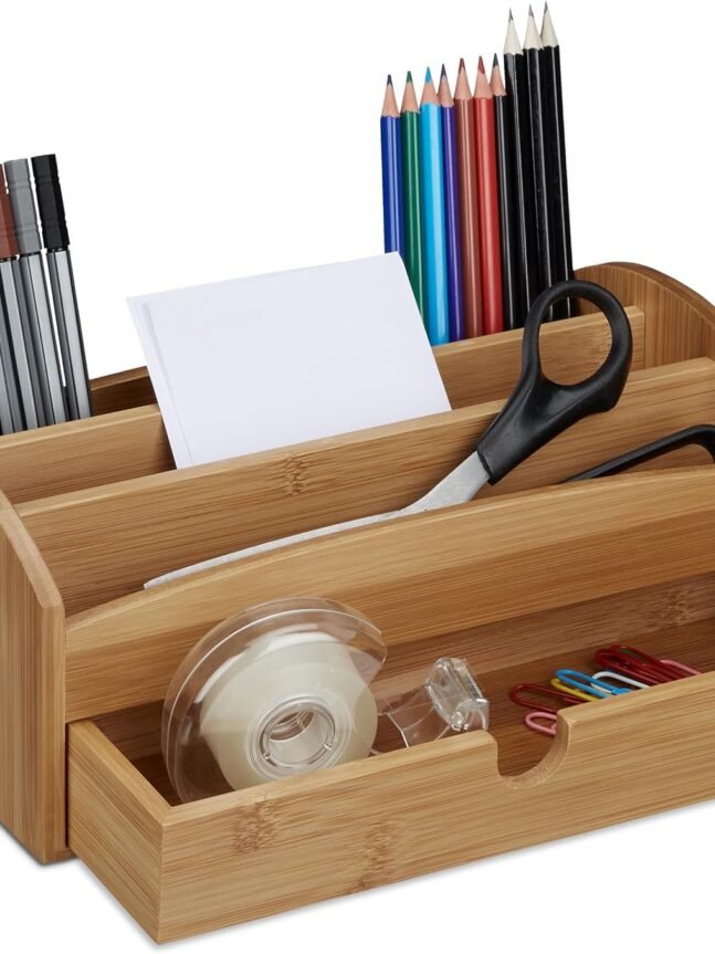 Ready to Use & Unique Design: Arriving fully assembled, this bamboo organizer is easy to clean and maintain. Each piece is uniquely crafted, ensuring no two organizers are alike. The all-natural bamboo construction adds an elegant touch to your decor while effectively managing desktop clutter.