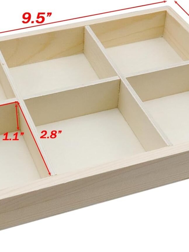 3.Easy Organization: 7 x 5 x 4 inches in size. The wooden storage box includes a removable middle divider for easy organization. Simply attach the divider to create two separate compartments or remove it to increase overall storage space!