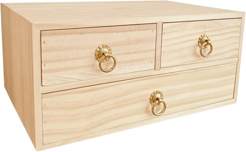 2 Layer Desk Organizer Wooden Desktop Organizer Tabletop Storage Organization Box Natural Wooden Storage Box Treasure Box with Metal Handle and 3 Drawer for Home Office Counter Craft Decor
