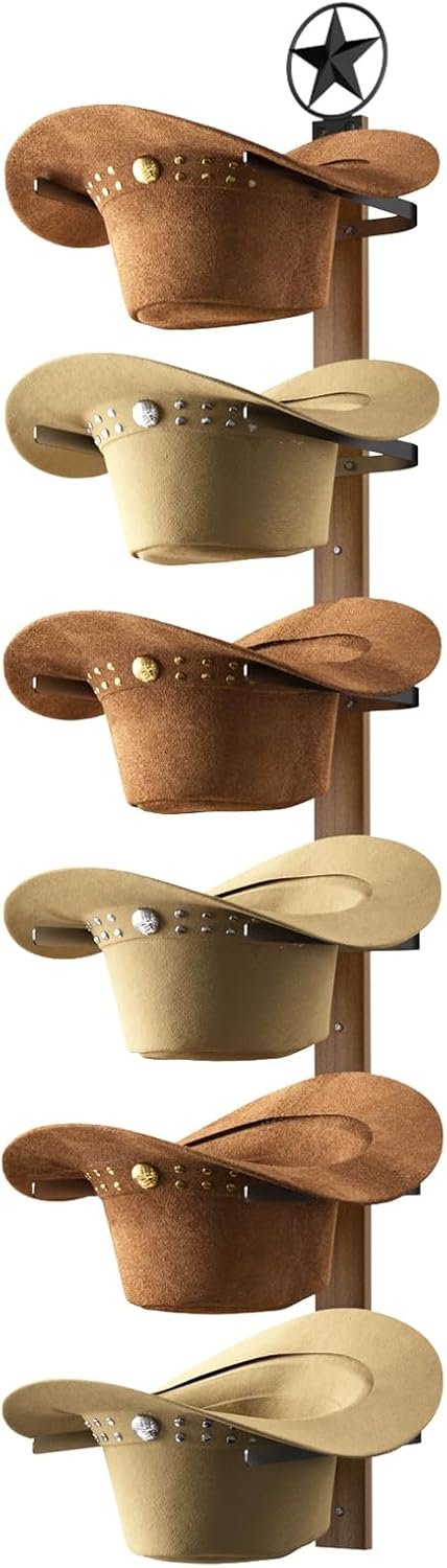 KEEP YOUR HAT IN SHAPE: Our cowboy hat rack is well-spaced to help protect and maintain your hat’s shape, preventing damage or deformation.