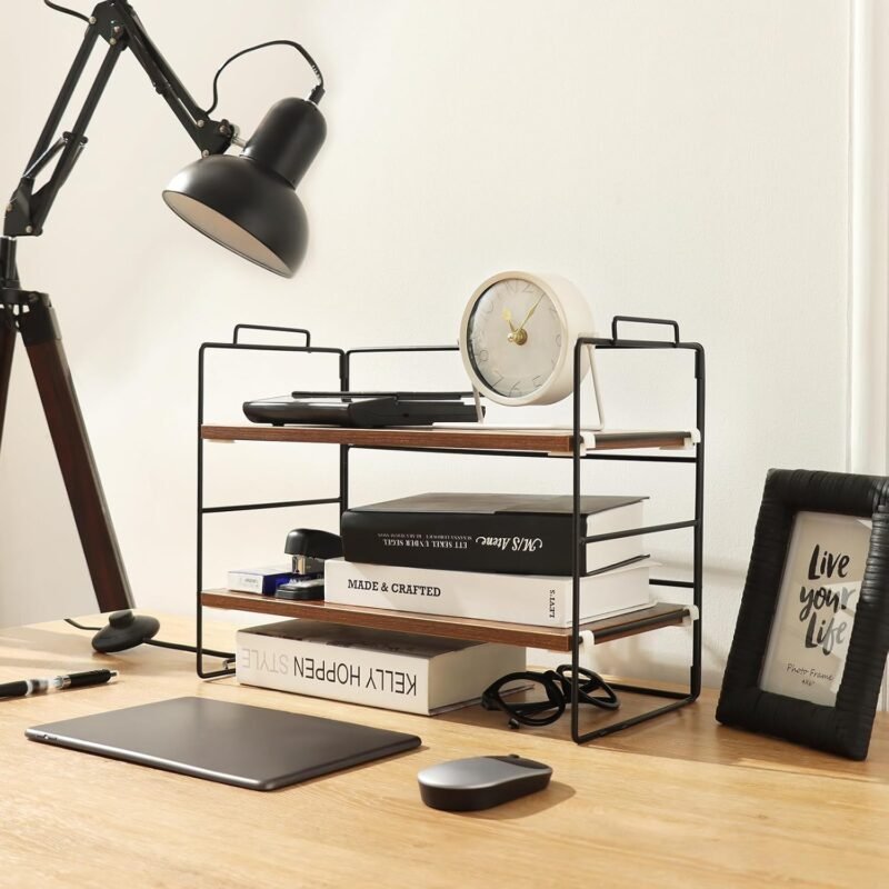 Wood Desk Shelf Organizer, 2-Tier Desktop Supplies Storage Rack, Adjustable Stackable Desk Shelf for Office, Kitchen, Bathroom, 15.75″*12.2″*7.87″