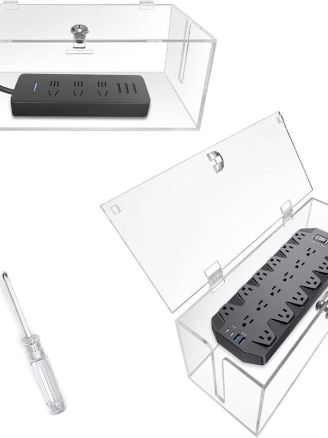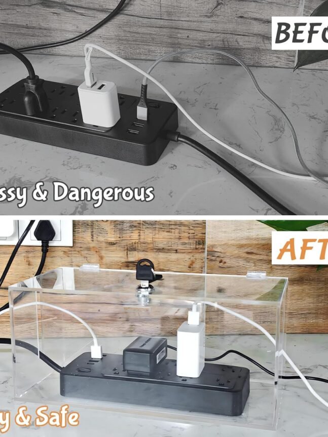 【Safe and High-Qua Material】Our cable organizer box is made of transparent acrylic material, this material is not only not easy to oxidize, but also good heat dissipation, heat and high temperature resistance, UV resistance, good toughness, impact resistance, can effectively protect the surge protector power strip from external interference, to create a neat and comfortable home and office environment