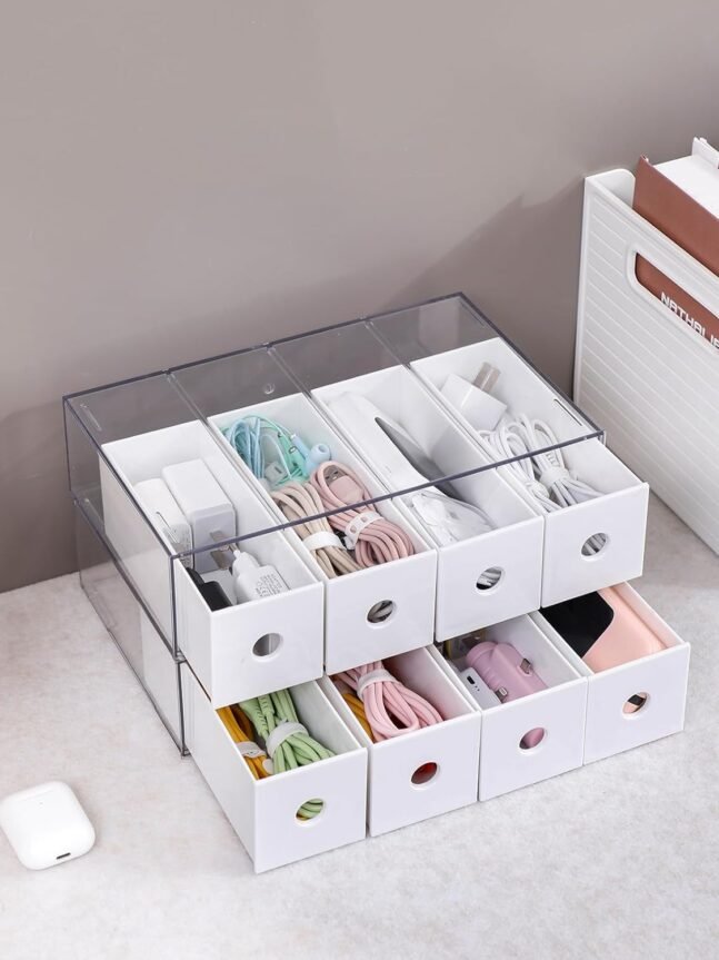 More Than Just a Cable Box: apart from being a cable organizer, these charger wire organizers can be your storage solution for a variety of items; From storing cosmetics, jewelry, sunglasses to organizing office supplies like paper clips and sticky notes, these boxes are versatile and multipurpose