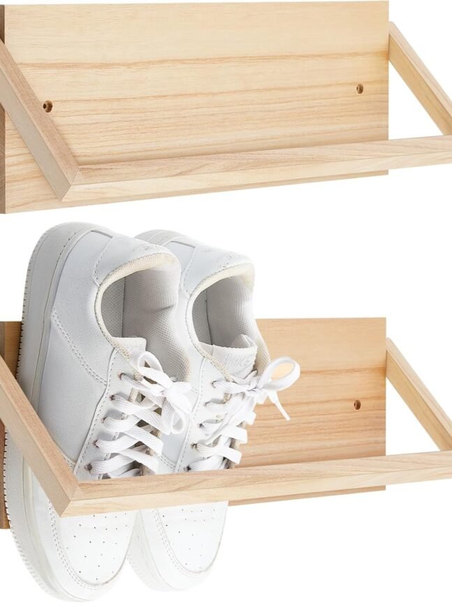 Proper Dimensions: measuring about 15.7 x 5.9 x 0.6 inches, our shoe wall rack is designed to fit many types of shoes without taking up too much wall space; Its compact size is ideal for tight spaces yet spacious enough to hold your beloved shoe collection